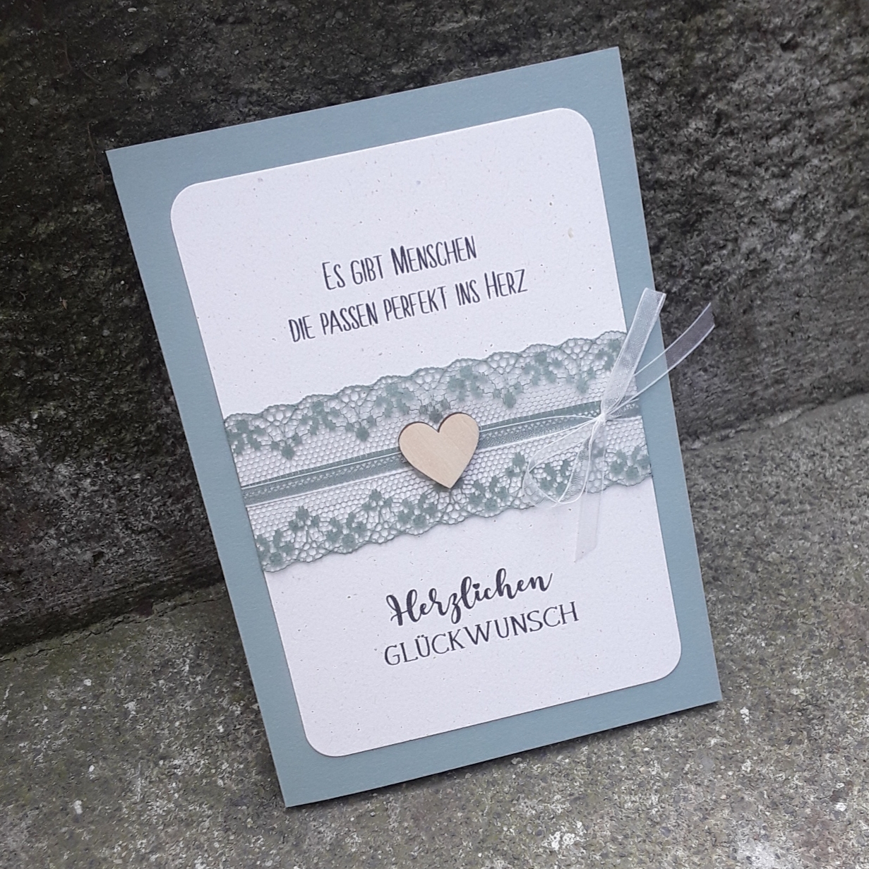 Hier als Bsp. Text: Es gibt Menschen die passend perfekt ins Herz, Herzlichen Glückwunsch
