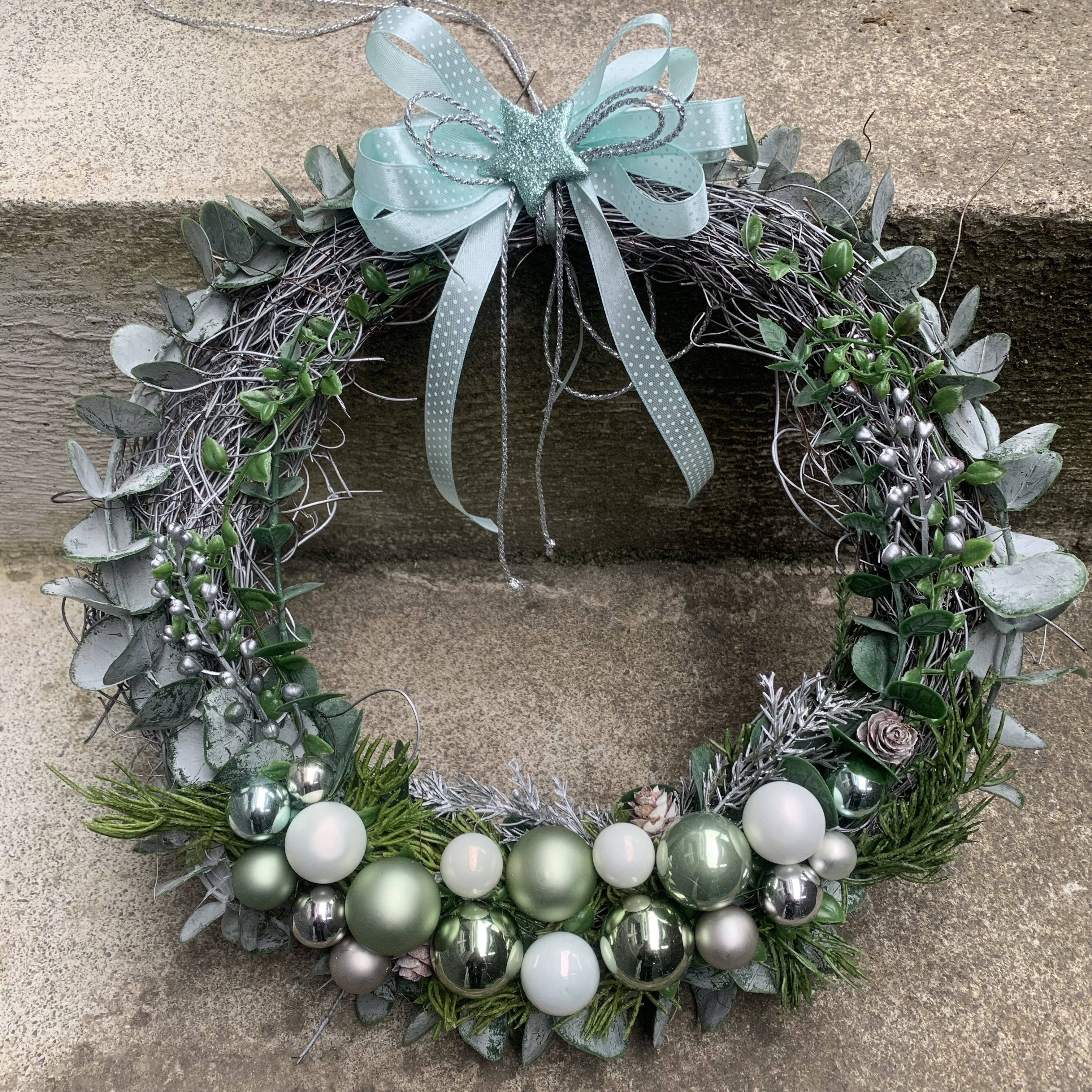 Falls Mint nicht Ihre Farbe ist, s. Adventskränze im Shop (da sehen Sie mit welchen Farben ich im Moment arbeite...)