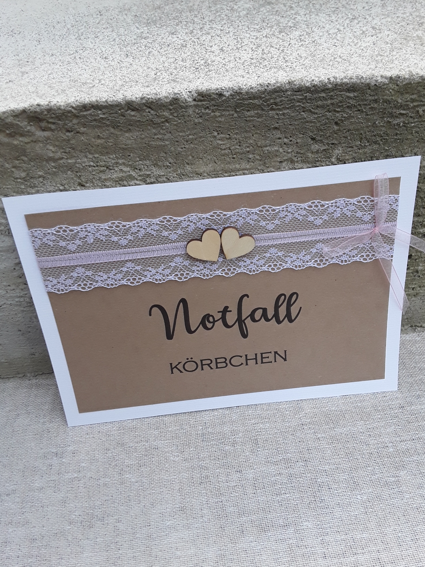KARTE/SCHILD NOTFALLKÖRBCHEN ZUR HOCHZEIT VINTAGE / RUSTIKAL
